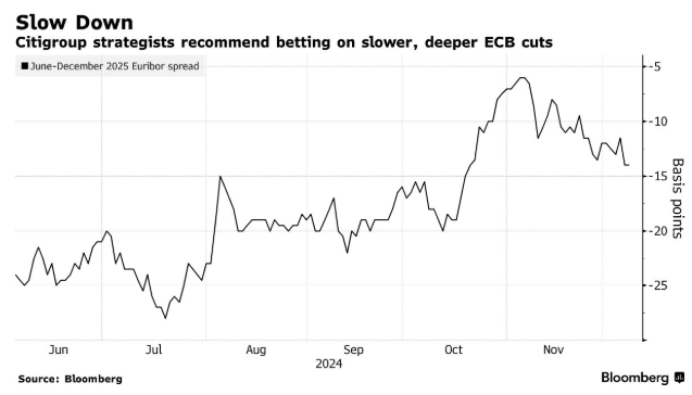 花旗集团表示,交易员应该押注欧洲央行明年降息步伐将会放缓,并表示市场对欧洲央行快速降息的押注已经有些过度了。
