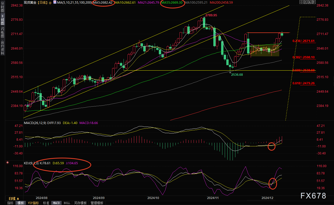 如果金价回落至5日均线2682.45下方,则增加短线下行风险,55日均线支撑目前在2669.30附近。