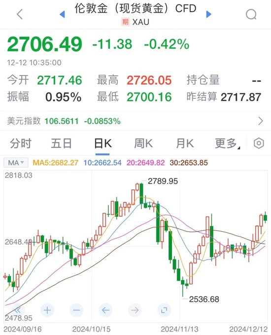 然而,美国通胀的顽固性仍然为美联储未来的政策制定带来了挑战。特别是随着特朗普将在2025年1月正式就任后,其“对内减税,对外增税”的经济政策可能进一步加剧通胀压力。这将迫使美联储重新评估更为复杂的经济环境,并可能调整降息节奏。若美国通胀持续反弹并突破3%的关口,美联储在2025年初暂缓降息的可能性将显著增加,或将对国际金价构成下行压力。