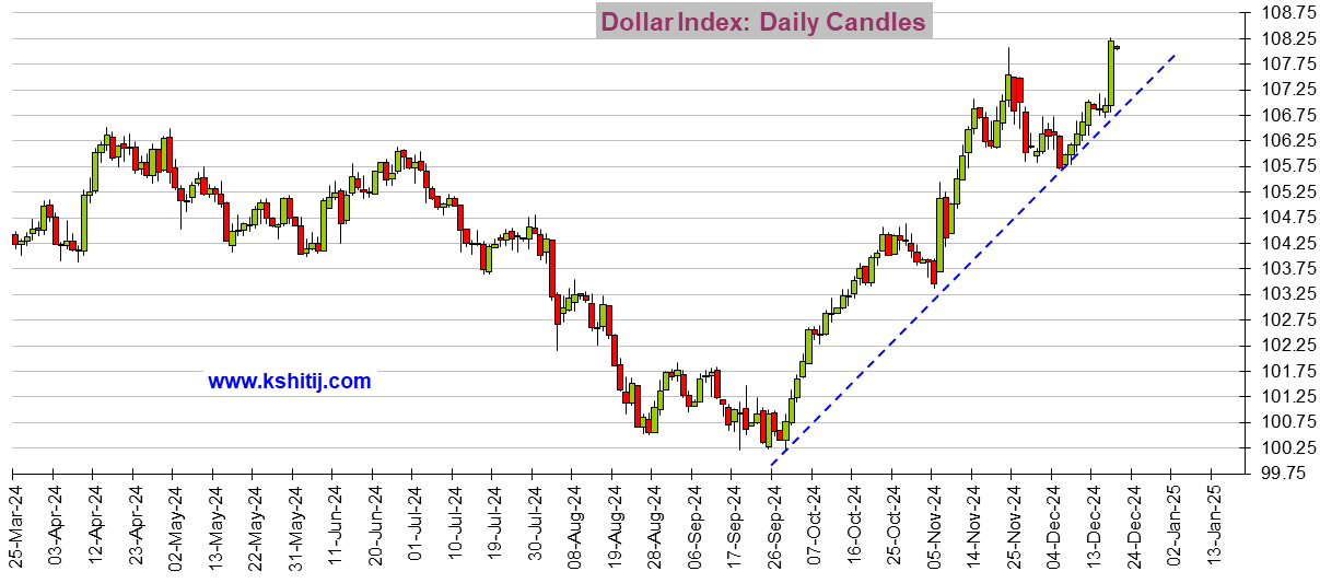 美联储周三将政策利率下调25个基点至4.25%-4.50%区间。美元指数急升至108.26的高位,因美联储表示,鉴于就业市场和通胀稳定,明年将放慢未来降息步伐。现在,108附近的价格走势很重要,要看它能否守住。只有在108之上持续交易才能使近期前景进一步看涨。否则,在接下来的几个交易时段中,美元指数可能会回落向107甚至更低,从而限制近期的上行空间。关注定于今天发布的美国GDP、费城联储制造业和成屋销售数据。