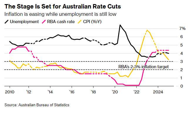 根据一项调查显示,多数经济学家和交易员预计,澳洲联储将于周二最终启动宽松政策,将现金利率下调25个基点至4.1%,这将是该联储自2020年11月以来的首次降息,并可能为需要克服低迷的民调以赢得连任的总理安东尼·阿尔巴内塞提供一剂强心针。