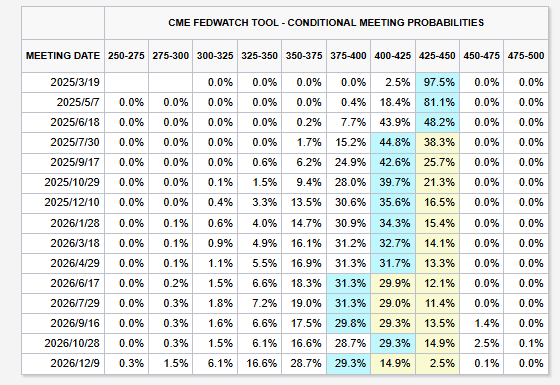 上月底,美联储决定将联邦基金利率目标区间维持在4.25%至4.50%之间,自2024年9月连续降息以来首次维持利率不变。市场目前认为,下一次降息最可能发生在今年7月份。