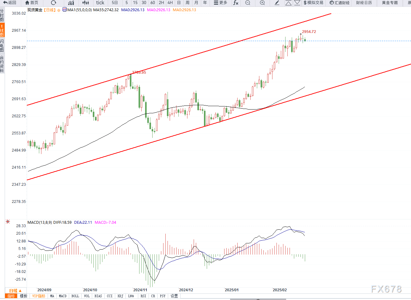 在避险需求的推动下,黄金价格周一维持在2,925美元/盎司附近,自上周新高之后小幅下滑。但金价已连续八周上涨,这是自2020年以来最长的连涨纪录。