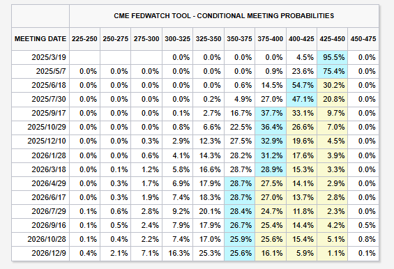 “如果逆风持续,我们很可能需要利用(加息)政策来逆风而行,”他说。这与目前的市场预期截然不同,根据CME美联储观察工具,目前市场普遍预计今年还将降息2次。