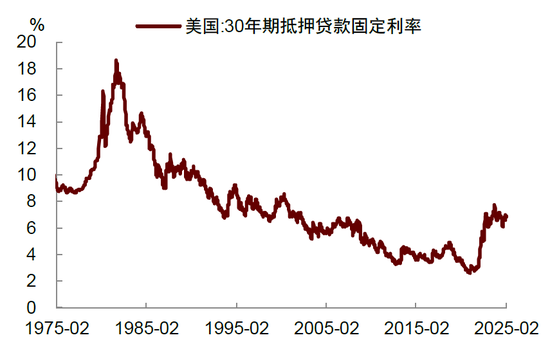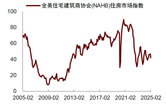 尽管美联储去年9月开启了降息周期,至今已累计降息了100个基点,但长端利率并未显著下降,这阻碍了对利率敏感的房地产行业的复苏。截至2月20日,美国30年期房贷利率仍高达6.85%,持续抑制新增贷款购房的需求(图表7)。由于1月核心CPI通胀超预期反弹,加上2月通胀预期有所抬升,我们认为美联储或推迟年内降息的时点至下半年,这将进一步打压未来利率下降预期。我们在去年底的报告中曾提到,本轮降息周期中,长端利率下降速度明显慢于以往周期,这会导致房地产全面复苏的时间被延后(参见《海外宏观2025年展望:从软着陆到新均衡》)。这一观点在近期的数据中得到了印证。