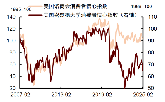 综合来看,美国经济基本面仍然稳固,但随着逆风因素增多,经济增长的下行风险可能上升。自特朗普就任以来,由于政策顺序是“先关税、后减税、先省钱、后花钱”,具有紧缩效果的逆风政策率先密集落地,这对企业和消费者信心已造成影响,而高利率抑制购房需求,进一步削弱了美国经济增长动力(参见《再思考:特朗普2.0的政策顺序及影响》)。我们认为,在这种背景下,经济的全面复苏可能需要等待上述不利因素的影响逐渐消退,或者是有真正意义上的商业友好型政策(如减税、放松监管和降息)得到落实,为经济注入新动力。但在这些变化发生之前,我们倾向于对美国经济前景持更加谨慎的态度。