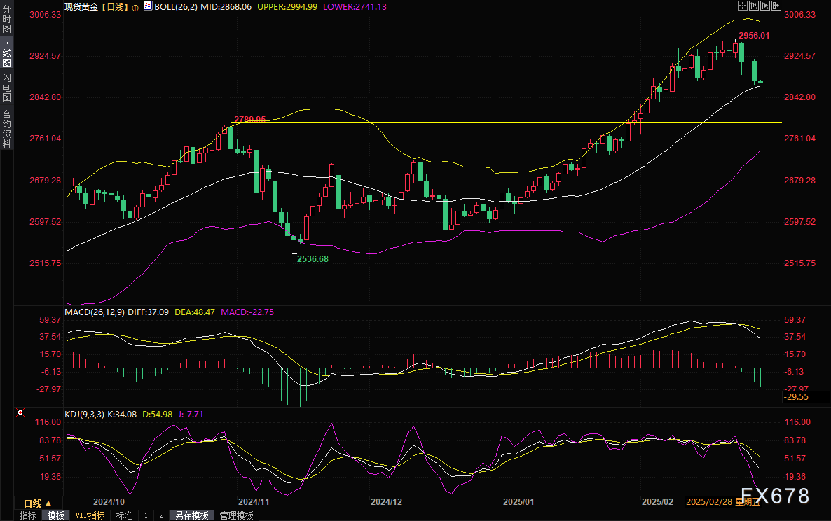 周五(2月28日)亚市盘初,现货黄金低位徘徊,目前交投于2975.33美元/盎司附近。金价周四大跌1.3%,盘中一度创逾两周新低至2867.86美元/盎司,收报2876.95美元/盎司,一方面是美国耐用品订单数据强于市场预期,美联储降息预期进一步降温,美元大涨创一周新高,压制金价;另一方面,俄乌战争接近尾声,地缘局势担忧情绪有所降温,打压黄金的避险买需,尽管国际贸易局势担忧仍挥之不去。