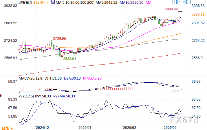 现货黄金日线图 来源:易汇通北京时间3月14日11:02 现货黄金 报 2984.11 美元/盎司