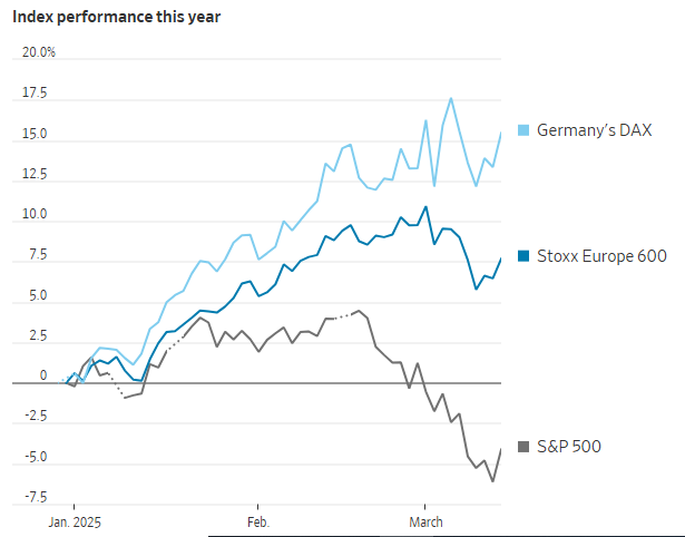 现年57岁新泽西州米尔本前投资银行家Jasmine Singh的转变就发生在2月28日,当时特朗普在白宫在激烈会面中痛斥了乌克兰总统泽连斯基。而到了下一周的周一,她便将投资组合从美股转向了欧洲股票。她表示,“我不知道我们现在处于怎样的世界,也不确定过去学的投资理论是否还适用当前市场。”