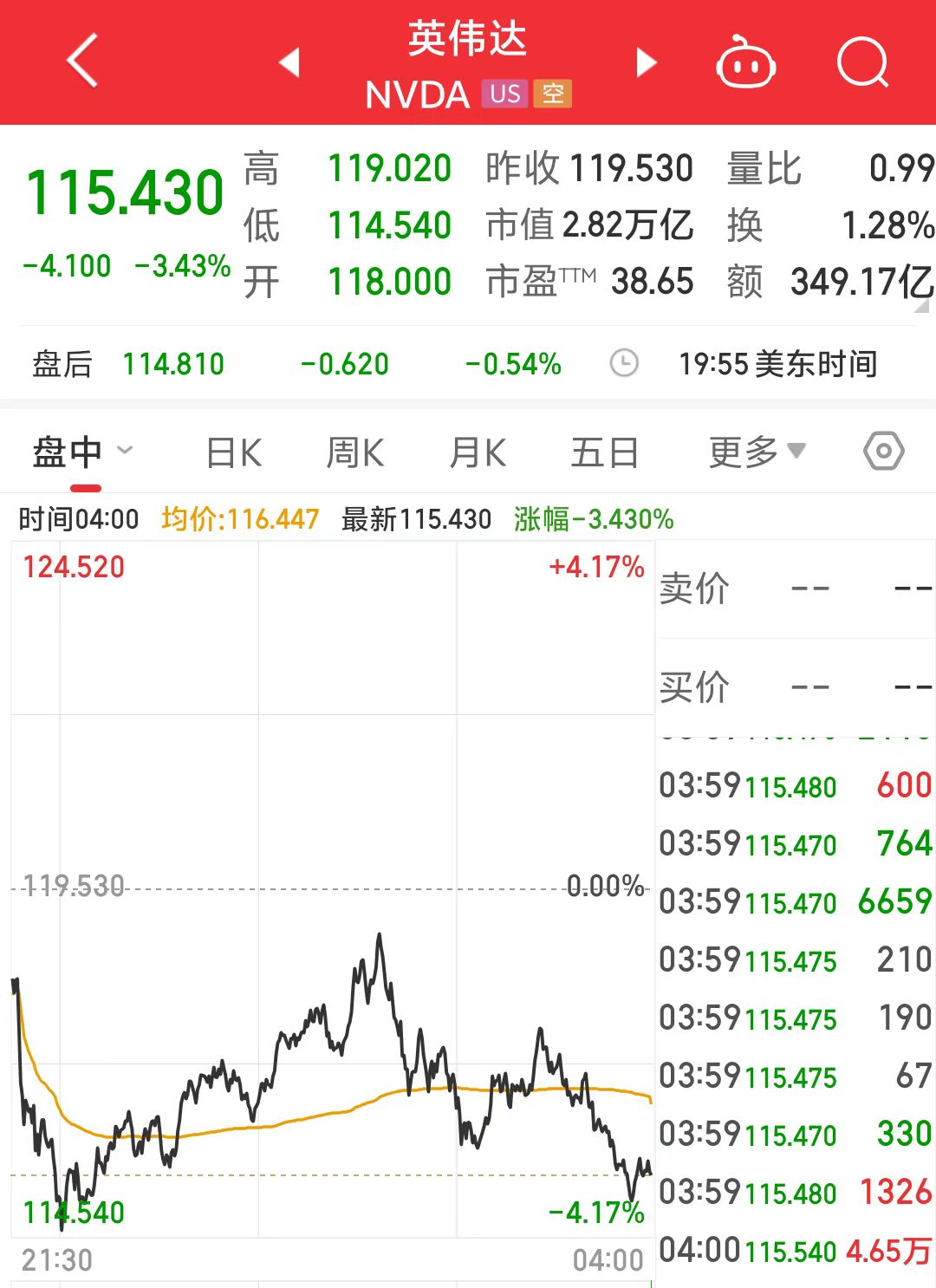 但美股市场似乎并未买账,在其演讲期间,英伟达股价持续走低,最终收跌3.43%。
