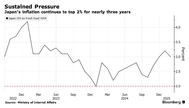 尽管整体通胀有所降温,但更深入的指标显示,潜在的价格压力保持稳定。剔除能源和生鲜食品的价格上涨2.6%,为约一年来的最快增速。日元持续疲软、反常天气和劳动力短缺等因素推高了多种食品的成本,由于实际工资停滞不前,家庭对此感到担忧。