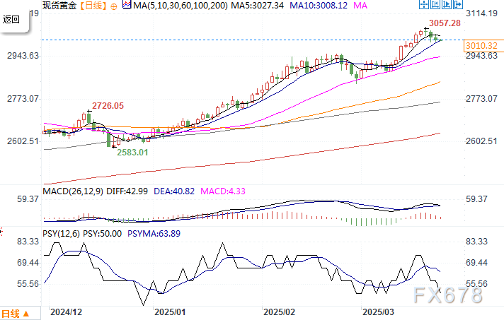 现货黄金日线图 来源:易汇通北京时间3月25日10:47 现货黄金 报 3009.32 美元/盎司