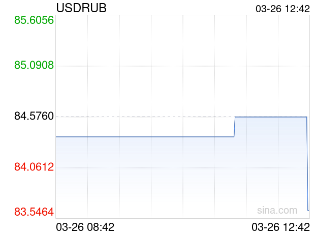 新浪外汇消息2025年03月26日,截至12时41分,外汇市场上美元兑俄罗斯卢布汇率跌破1美元兑换83.6300俄罗斯卢布。跌幅为-1.1185%