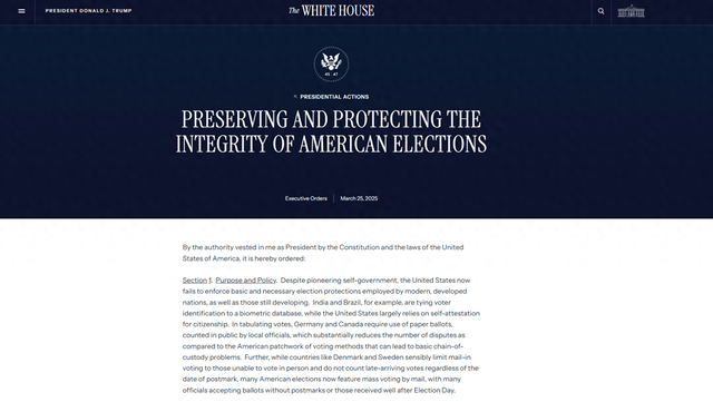 因此,特朗普的最新行政令规定,各州须在个人登记投票时要求提供公民身份证明。