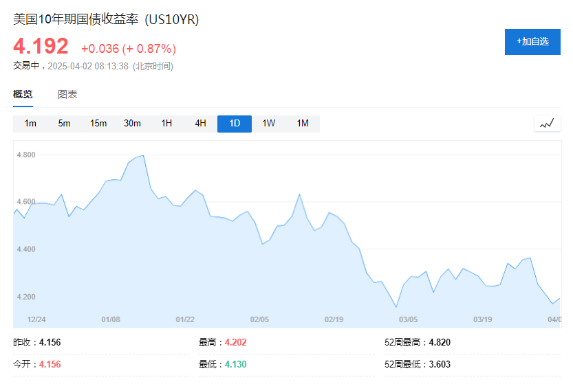 “考虑到关税政策实施后可能带来的美国本土经济放缓,政府债券看起来是有吸引力的对冲风险工具。鉴于金价已经大幅上涨,此时再增加黄金配置较为困难。”