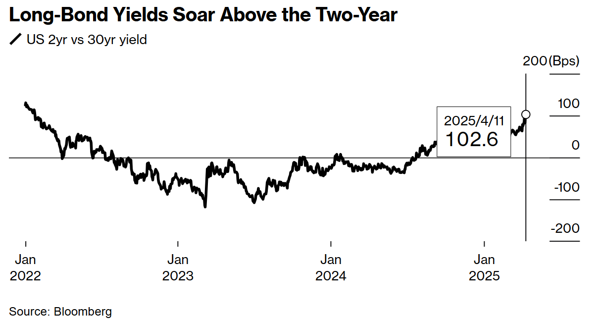 上周长期美债收益率飙升、股票市场剧烈震荡之际,市场对收益率曲线趋陡的押注激增,这显示出美债作为全球动荡时期避风港的地位可能正在减弱。