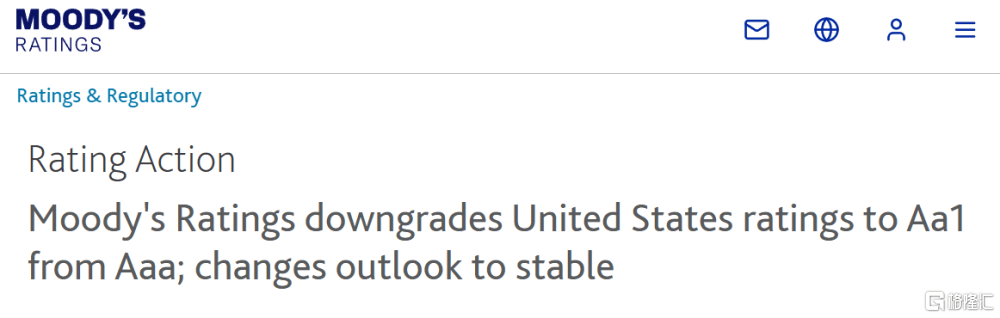 与此同时,当地时间周五,穆迪评级(Moody’s Ratings)将美国主权信用评级下调一级,从Aaa降至Aa1。()