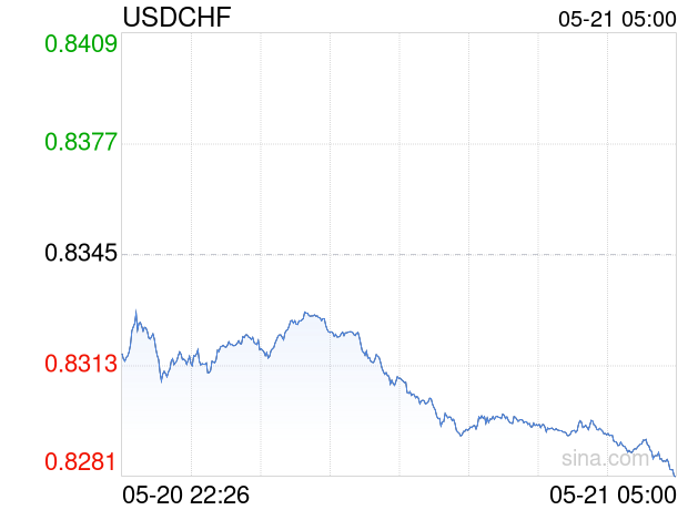 新浪外汇消息2025年05月21日,截至05时00分,外汇市场上美元兑瑞士法郎汇率跌破1美元兑换0.8281瑞士法郎。跌幅为-0.7646%