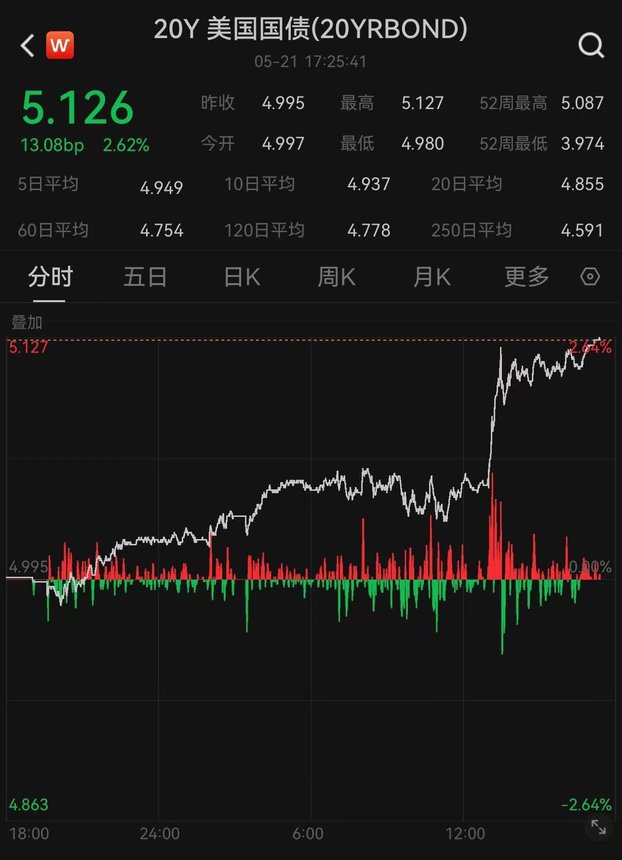 随着今日凌晨美国财政部20年期国债标售数据出炉,美国股市在美债收益率轰鸣冲高的背景下集体跳水。