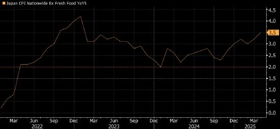 日本周五发布的数据显示, 4月份不包括新鲜食品在内的消费者价格同比上涨3.5%,前月升幅为3.2%。经济学家此前预计涨幅为3.4%。另一项还剔除了能源成本的指数上涨3.0%,这是一年多来首次触及这一水平。