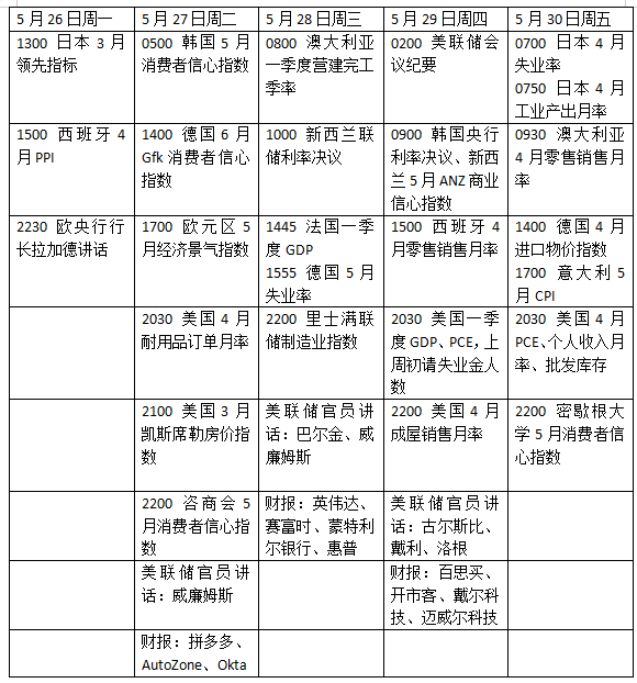 数据方面,值得重点关注的指标包括4月美国PCE,这是美联储尤为看重的衡量通胀走势的指标。此外,5月咨商会消费者信心指数和第一季度国内生产总值(GDP)修正数据也值得关注。此外,4月的耐用品订单可能会比往常更为关键,因为关税的影响迹象有望开始显现。
